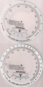 To complement both the Double-sided BMI Calculator Wheel and the Pocket-size BMI Calculator Wheel for adults, we have a children's version for use with percentile growth charts.